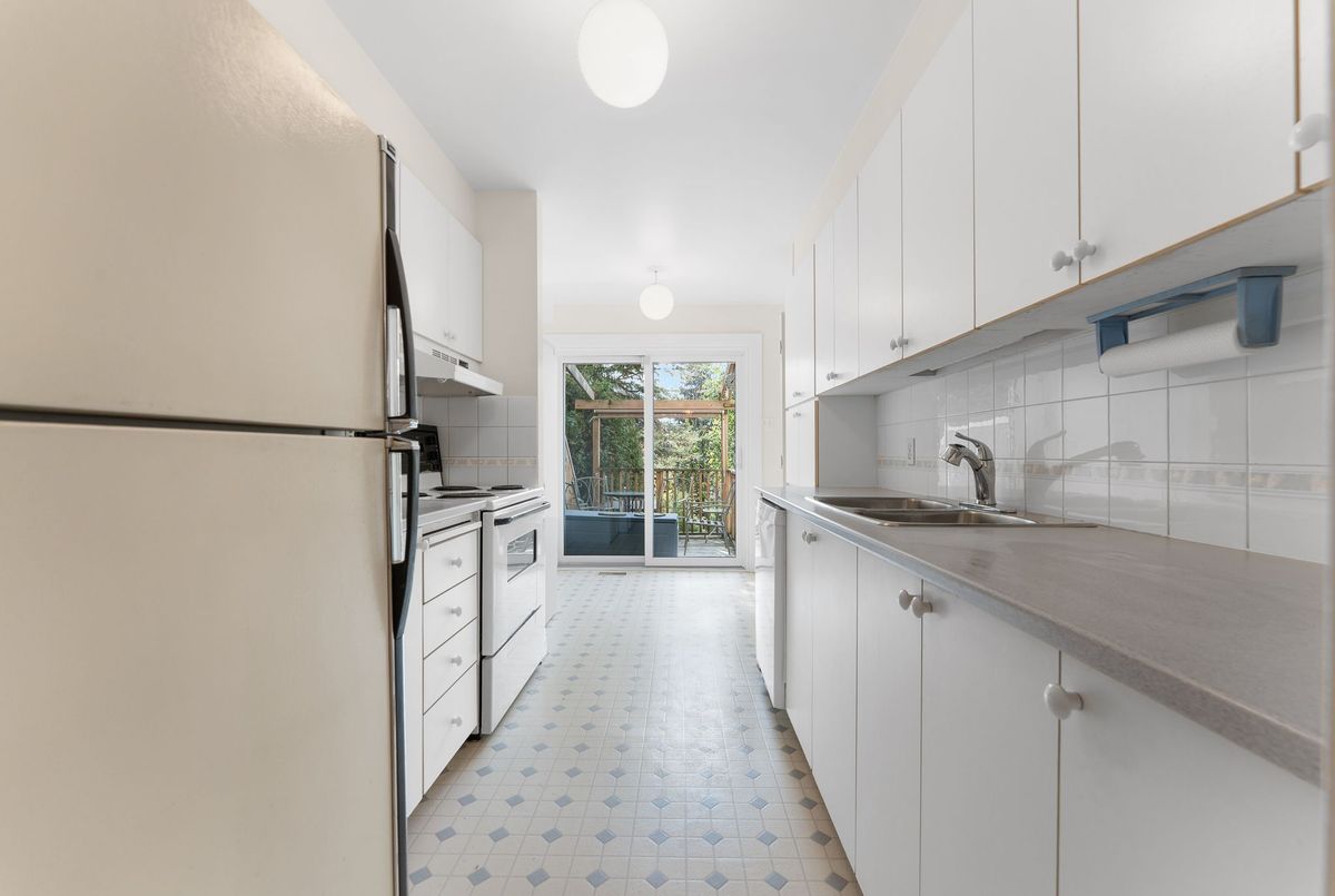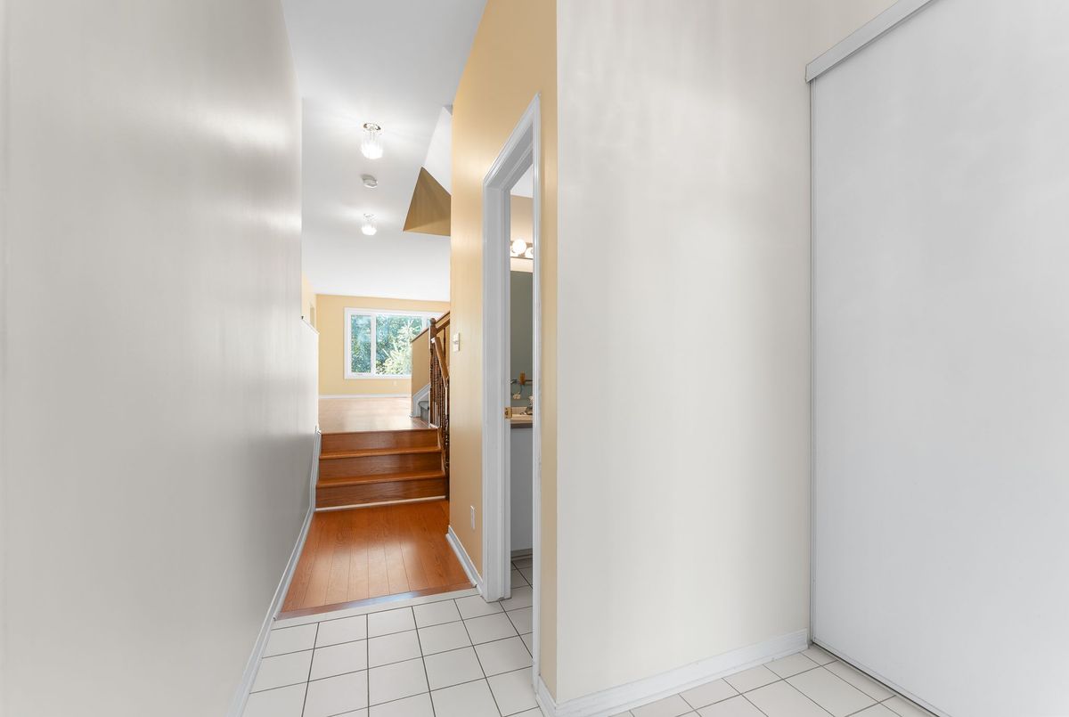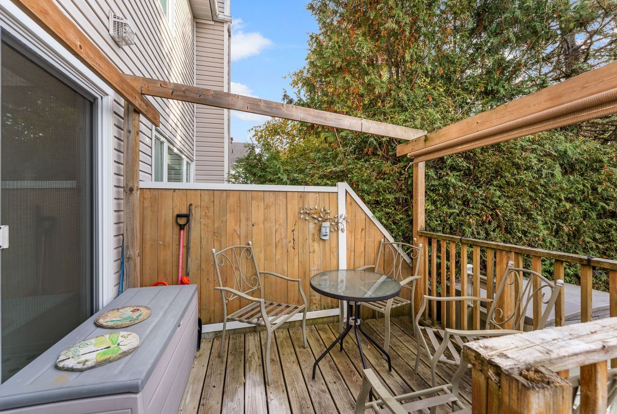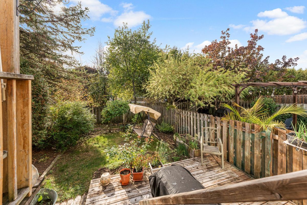 Welcome to this 1800 sq ft freehold townhome featuring hardwood flooring on the main level and a bright kitchen overlooking the landscaped backyard with mature gardens and a deck perfect for relaxing or entertaining. The finished basement offers extra living space with plush carpeting and a gas fireplace, perfect for a family room or home office. Upstairs features 3 spacious bedrooms, including a generous primary suite with a walk-in closet and a 4-piece ensuite bathroom. Situated in a family-friendly neighborhood, this home is close to both French and English schools, beautiful parks, public transit, entertainment, and all major amenities. This move-in-ready home is perfect for families, first-time buyers, or investors. The plumbing system has been updated, replacing Poly B with PEX piping 2025, Portions of the Interior Repainted 2025, Hardwood 2018, Furnace, AC & Windows 2012, Roof 2013, Fireplace 2019