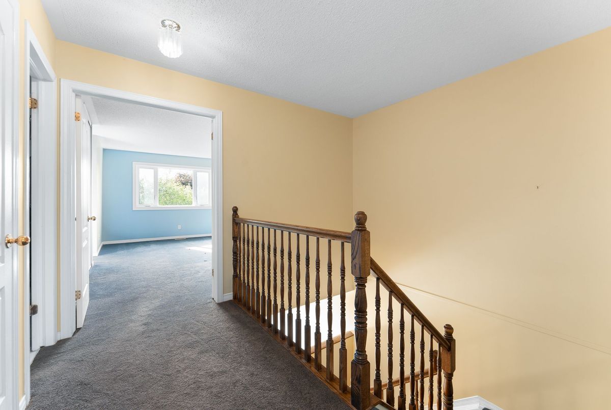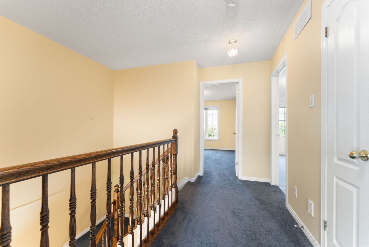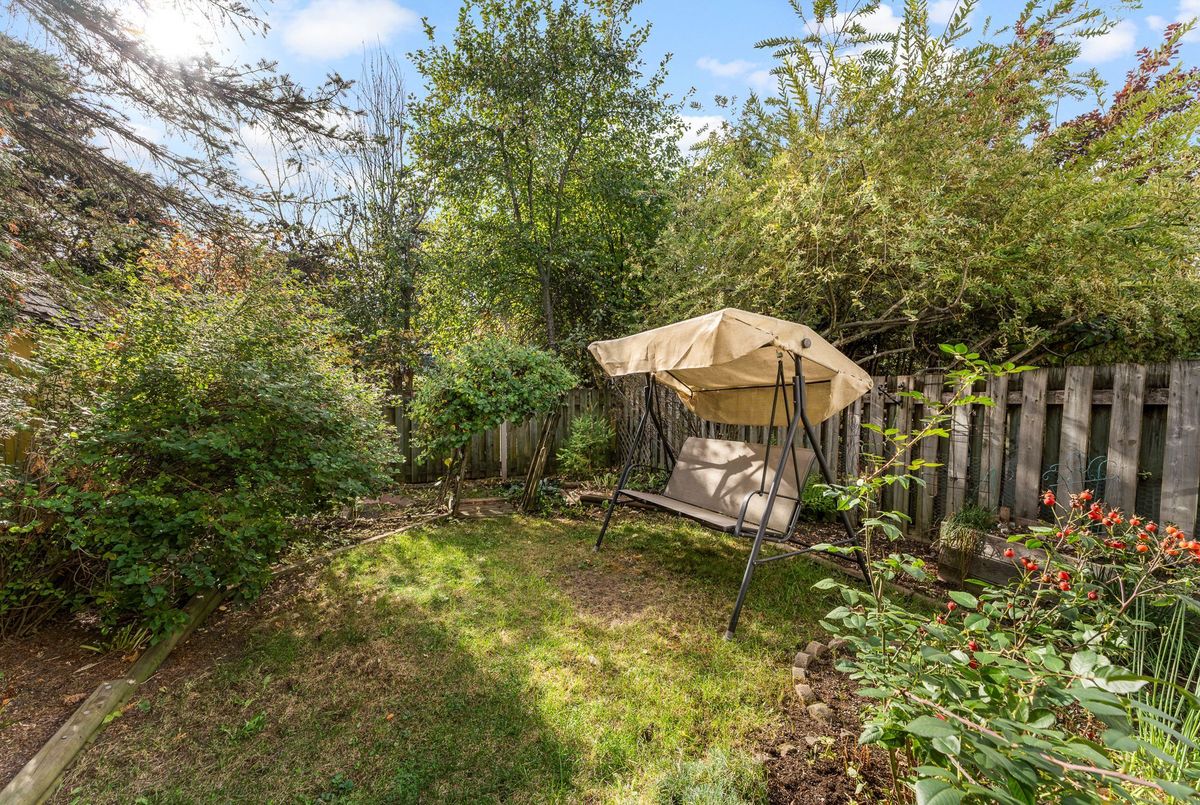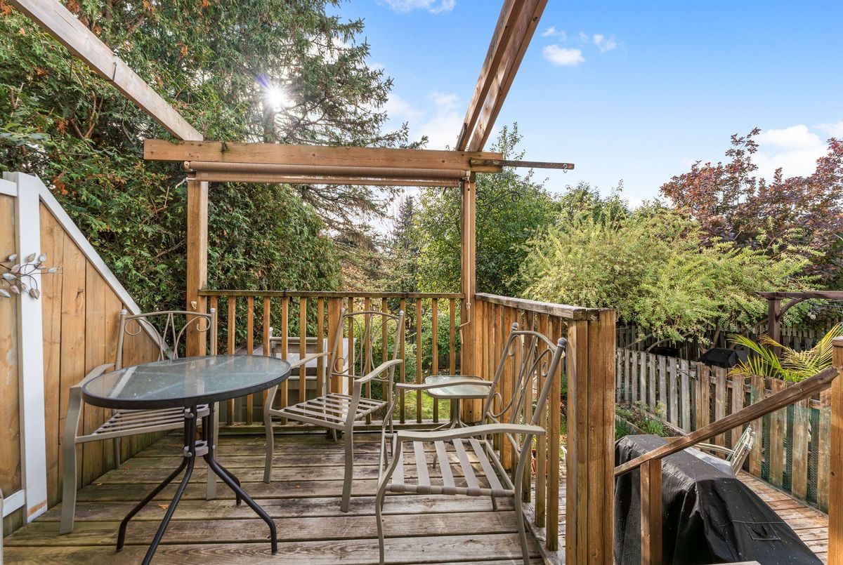 Welcome to this 1800 sq ft freehold townhome featuring hardwood flooring on the main level and a bright kitchen overlooking the landscaped backyard with mature gardens and a deck perfect for relaxing or entertaining. The finished basement offers extra living space with plush carpeting and a gas fireplace, perfect for a family room or home office. Upstairs features 3 spacious bedrooms, including a generous primary suite with a walk-in closet and a 4-piece ensuite bathroom. Situated in a family-friendly neighborhood, this home is close to both French and English schools, beautiful parks, public transit, entertainment, and all major amenities. This move-in-ready home is perfect for families, first-time buyers, or investors. The plumbing system has been updated, replacing Poly B with PEX piping 2025, Portions of the Interior Repainted 2025, Hardwood 2018, Furnace, AC & Windows 2012, Roof 2013, Fireplace 2019